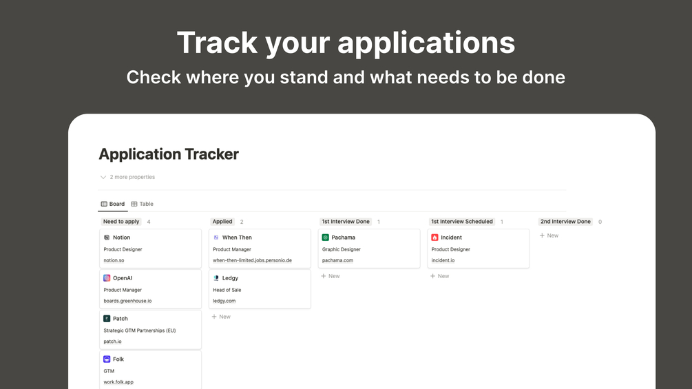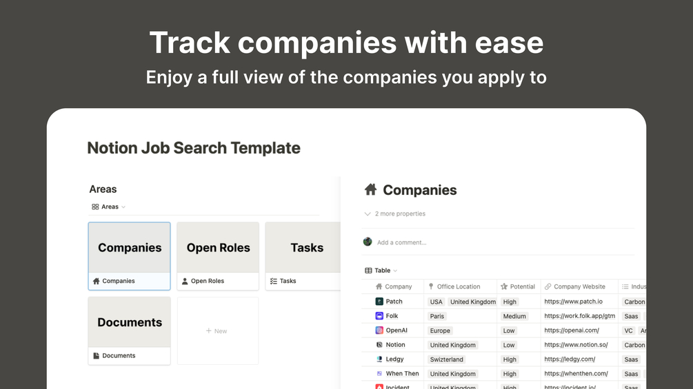 With our Notion job search template, you can stay organized and streamline your job search process, enabling you to focus on finding the perfect job faster. Download the template today and achieve your career goals with ease!