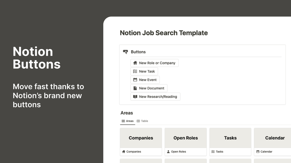 Our template also includes new Notion buttons that can help you save time and be more productive during your job search.