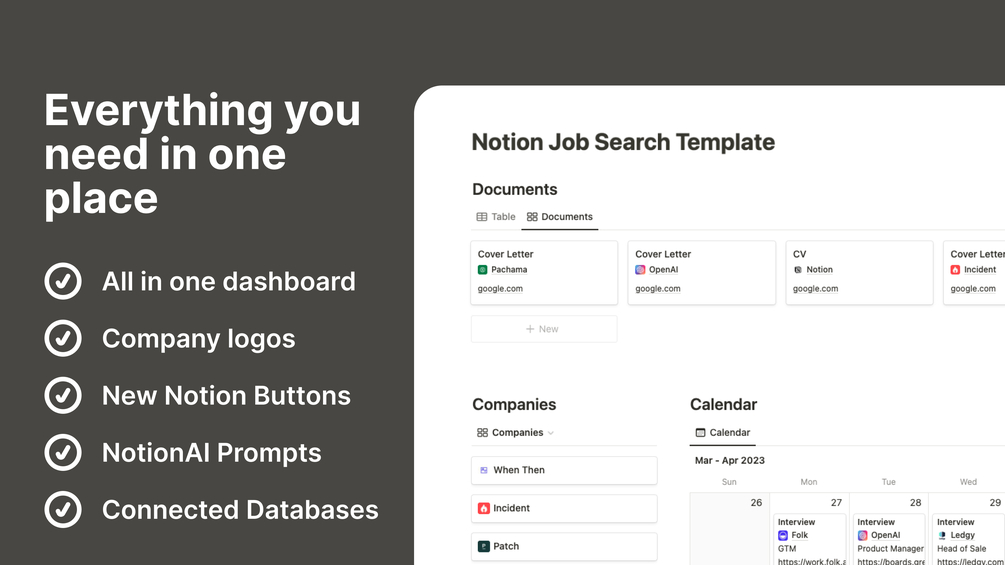 Looking for a faster and more organized way to find your dream job? Our all-in-one Notion job search template can help you streamline your job application process and keep track of all your applications seamlessly.